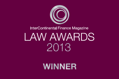 InterContinental Finance Magazine 2013 Law Awards is a professional award of the InterContinental Finance Magazine, a famous monthly edition in the sphere of consulting and financial management. The award is adjudged globally to the best law firms based on their service level and quality of services. The award is based on an independent poll of InterContinental Finance Magazine readers all over the world who determine market’s leaders.